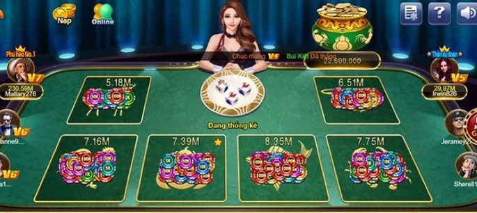 • Người chơi tham gia cược Tài sẽ thắng cược khi tổng số điểm của 3 xúc xắc là từ 11 đến 17.