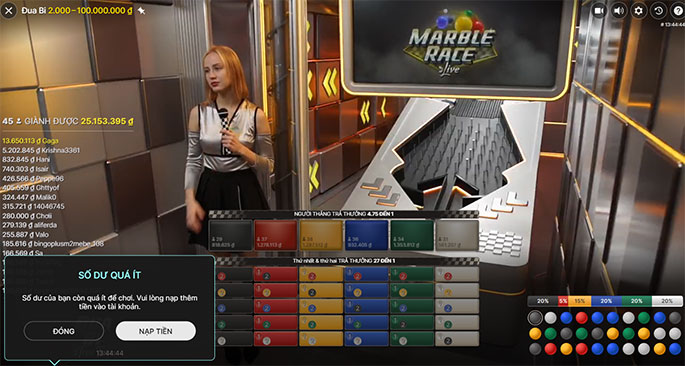 Marble Race hay còn được biết với tên gọi là Đua Bi, trò chơi casino trực tuyến cực kỳ phấn khích, đơn giản, dễ chơi nhưng luôn có điều bất ngờ tại sảnh Evolution.